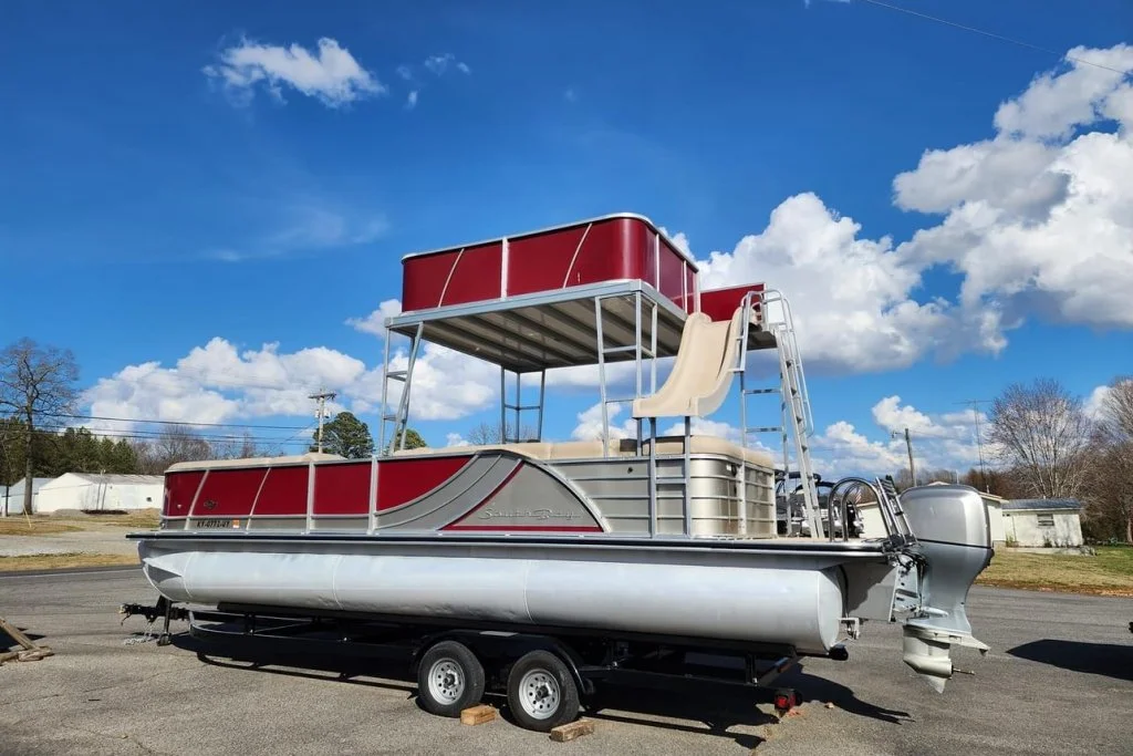 Enjoy smooth cruising and reliable performance with this 90 HP JC Spirit Tritoon. Great for laid-back lake days, fishing trips, or a peaceful ride with family and friends.
